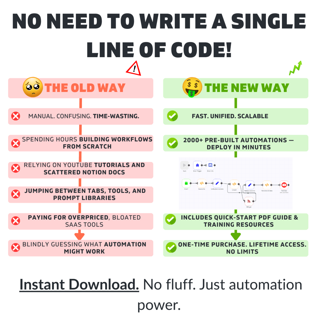 This is exactly why we built the Ultimate n8n Workflow Bundle โ over 4000 ready-to-run automations to supercharge your daily operations and help you stay in flow.