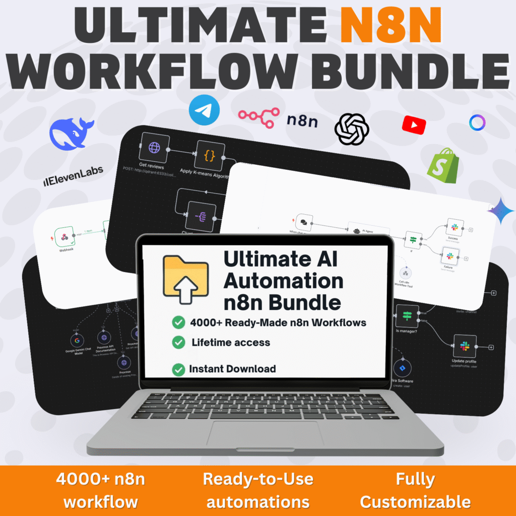 Supercharge your productivity with the Ultimate n8n + AI Workflow Bundle, over 4000 plug-and-play blueprints to automate, scale, and create like never before.